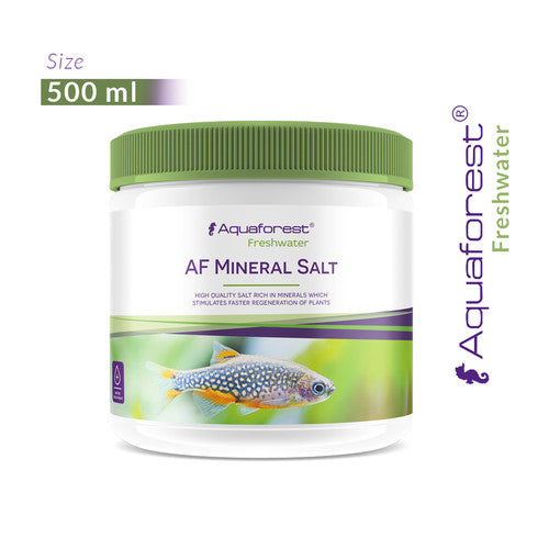 Salt for RO water mineralization. Enriched water with minerals critical to plants and tank inhabitants. AF Mineral Salt dissolves quickly and is easy to use. It is suitable for mineralization of RO, deionized and distilled water. Promotes faster regeneration of plants after moving, trimming and changes in water values after water changes. Contains all the necessary minerals that are crucial for the cultivation of plants, freshwater fish and shrimp. AF Mineral Salt helps prevent diseases caused by low mineral content in water, protects fish from stress and osmotic shock. The formula contains no sodium, which could hinder healthy plant development. 10 g of mineral salt in 100 liters (27 US gal) of water increases the content by: GH: 3 KH: 2 K: 6 mg/l Ca: 6.5 mg/l Mg: 4.1 mg/l Mn: 1.16 µg/l