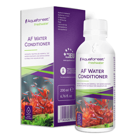 A formula intended for water treatment with added vitamins and protective colloid. Instantly prepares tap water for direct use in aquariums. AF Water Conditioner reduces the chlorine levels which pose risk to fish, binds and neutralizes heavy metals. Renders water-soluble compounds, e.g. iron, bioavailable to plants. While being transported, the fish often suffers damage to skin, fins, and mucus. Thanks to the protective colloid content, which replaces the natural mucus, the fish skin regenerates faster and is less susceptible to injury and infections. A specially selected composition of B vitamins additionally strengthens the immune system of fish and supports their regeneration. Description: A water treatment formula which binds heavy metals in water and removes toxic chlorine forms. Renders water-borne compounds bioavailable to plants. The protective colloids and B vitamins content makes it easier for fish to withstand stress and more resistant to disease. AF Water Conditioner works immediately after application.