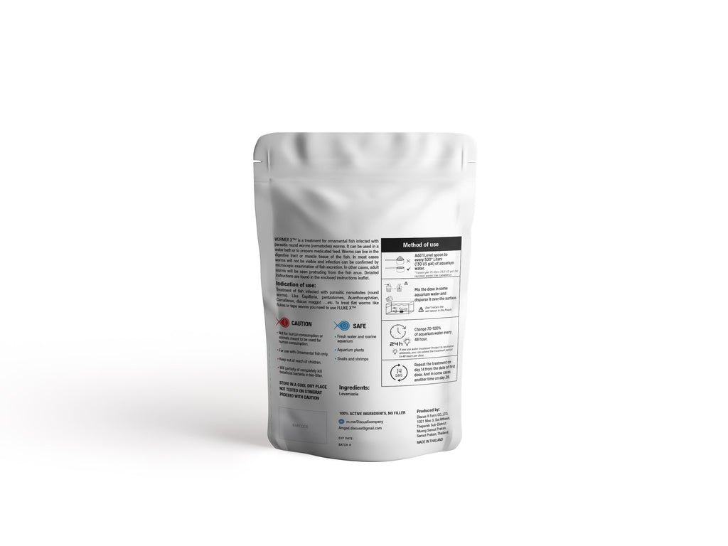 Before treatment clean the aquarium glass, substrate and filter to reduce the organic waste load. On day one add 1 level of included spoon (1 g) for every 500 liter (130 US gal) of Aquarium water for 48 hours. Then do a large water change to end the treatment. (If the water is changed before the end of the treatment, re-dose according to the amount of new water added only) For smaller volumes of water add 1 level spoon to 100 ml of water and stir it, until the powder is completely dissolved. From this solution take 1 ml for every 5 liters (1.3 US gal) of aquarium water. The prepared solution should be stored in a fridge and used within one week. On Day 15 repeat the treatment for another 48 hours. Repeating the treatment is essential to complete the treatment because the medication will only kill the worms, however, the eggs will hatch after 2-3 weeks and re-infect the fish.