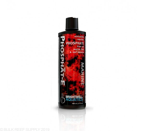 Advanced: Determine phosphate concentration in aquarium prior to first use by testing with an accurate test kit. Each ml of Brightwell Aquatics Phosphāt-E will eliminate 1 ppm of reactive (available) phosphate in 4 US-gallons (15.142 L) of water. The result is an inert particulate that is permanently removed from the aquarium via mechanical filtration and protein skimming. To maximize the rate of phosphate removal, Phosphāt-E should be added to the aquarium near the intake of a mechanical filter or protein skimmer. Doing so will enable the inert particulate phosphate compound to be effectively removed from the aquarium. Particulate material not removed by filtration will remain inert and the bound phosphate non-reactive indefinitely under normal aquarium conditions. The maximum dosage should not exceed 1 ml per 4 US-gallons (15.142 L) daily, as too rapid a decrease in the concentration of phosphate may irritate sensitive corals, particularly if the phosphate concentration has existed at a relatively-high level for an extended period of time (e.g. 3 - 6 weeks). The concentration of available phosphate in marine aquaria should not be allowed to exceed 0.05 ppm for any lengthy period of time; available phosphate in the presence of other substances can indirectly negatively impact the appearance of an otherwise beautiful marine aquarium. If corals or other invertebrates appear to react negatively to the addition of the product, it may be an indication that reactive phosphate is being removed too aggressively; decrease dosage by 50% and continue treatment until phosphate concentration appears to be immeasurable.