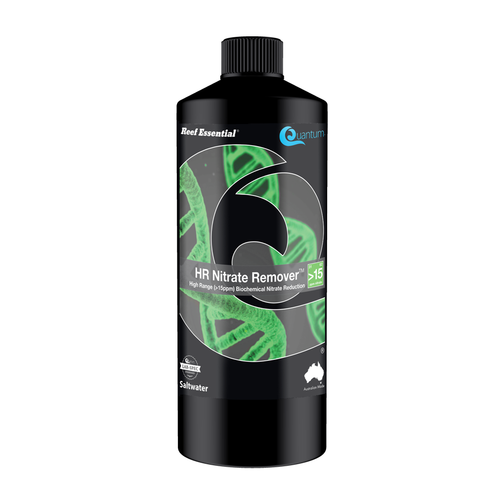 HR Nitrate Remover™ is designed for aquariums that have higher than 15ppm nitrate. It is formulated specifically to reduce high nitrate within marine/reef environments and works by providing bioavailable carbon sources to denitrifying bacteria present in media, deep sand beds & inner pores of live rock. The bacteria oxidise the reduced carbon sources into carbon dioxide while reducing nitrate to chemically inert nitrogen gas. If you are experiencing nitrate 15ppm or lower, we recommend using our LR Nitrate Remover™