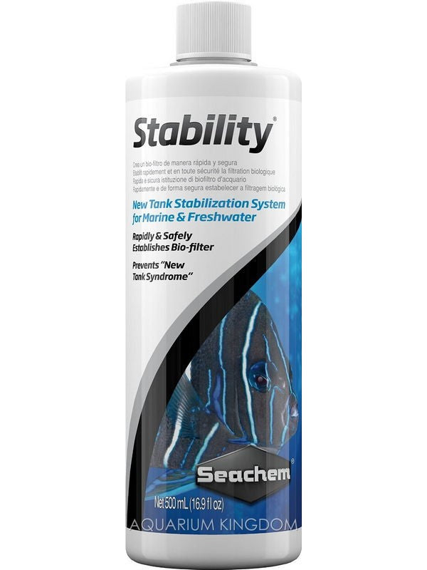 Stability® will rapidly and safely establish the aquarium biofilter in freshwater and marine systems, thereby preventing the #1 cause of fish death: "new tank syndrome". Stability® is formulated specifically for the aquarium and contains a synergistic blend of aerobic, anaerobic, and facultative bacteria which facilitate the breakdown of waste organics, ammonia, nitrite, and nitrate. The bacteria employed by Stability® are non-sulfur fixing and will not produce toxic hydrogen sulfide. Stability® is completely harmless to all aquatic organisms as well as aquatic plants, thus there is no danger of over use.