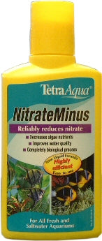 High nitrate levels can encourage excessive algae growth, which can make the aquarium look unsightly. Unlike other nitrate reducing products, which need regular recharging and replacing, Tetra NitrateMinus is simply added weekly to the aquarium. Also unlike many ordinary nitrate reducing products, NitrateMinus does not need to be added to a filter system to work, but is simply added straight to the water.