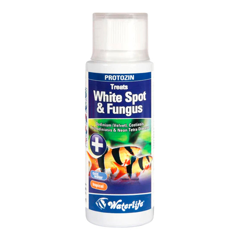 PROTOZIN is used for the control of all protozoan and fungal infections e.g Whitespot, Fungus, Neon Tetra Disease, Velvet, Costiasis and Trichodiniasis.