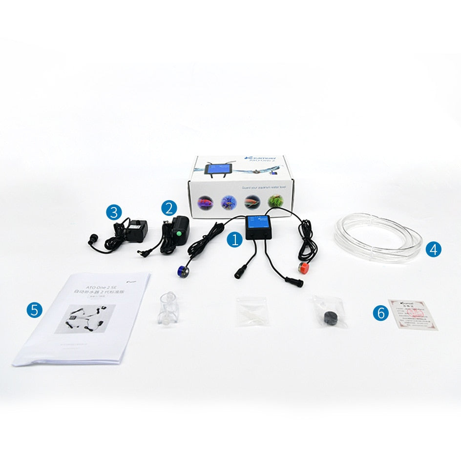 ATO One 2 SE is the standard version with submersible pump, it only needs to install the sensor and submersible pump, which can be used after power on without setting. The sensor is fixed by magnet, which is convenient for installation and adjustment. Equipped with optical level sensor, blue optical level sensor is used to monitor the water level and decide whether to replenish water, red optical level sensor is used to prevent the overflow. ATO One 2 SE has rich status indication, when the refill water overflows or overtime, when the water in the refill container is insufficient, ATO One 2 SE will have indicator light and buzzer alarm.