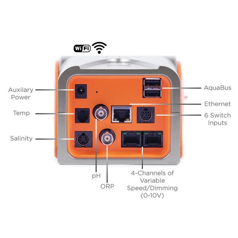 Built-in WiFi, Salinity, Temperature, and pH monitoring. Set reminders, log testing and dosing information and much more! Upgrading from the Apex Classic to the new Apex Controller base unit allows you to use accessories like the EB832 and others that require the increases onboard memory and processor power.