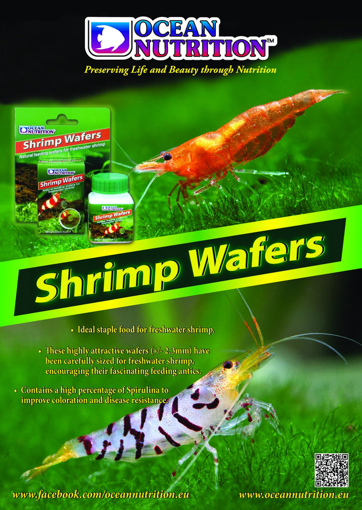 The ever increasing popularity of freshwater shrimps in the aquarium hobby through nano and planted aquaria inspired us to create a staple diet for these invertebrates (Caridina, Neocaridina, etc…). These highly attractive wafers (+/- 2.3mm) have been carefully sized for freshwater shrimp, encouraging their fascinating feeding antics. Once distributed, shrimps will gather in the feeding area. Contains a high percentage of Spirulina to improve coloration and disease resistance. Feed 1 to 2 wafers per shrimp per day.