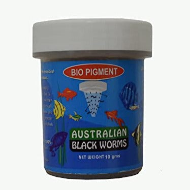 Black Worms to bring out the reds and oranges in your fish.Black Worms are a Naturally Occurring aquatic worm that is commercially cultivated and then dried in a way which retains all their goodness. Black Worms are an excellent, natural, high protein food for tropical fish and turtles. It is an excellent food for Finicky eaters and also for conditioning fish for breeding.