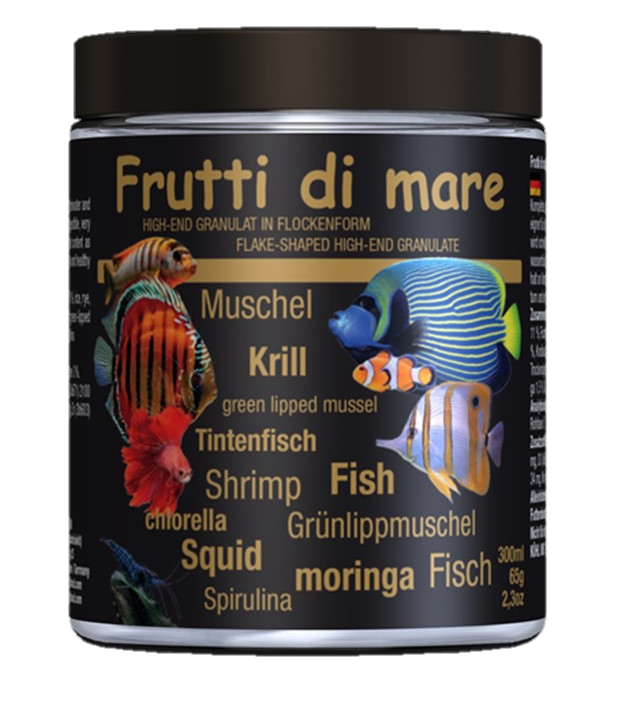 Complete, fully extruded granulate in the form of a flake, suitable for all freshwater and saltwater fish and for lower animals. It is quickly accepted and highly digestible, very dimensionally stable and does not cloud the water. A balanced nutrient content as well as the high content of vitamins and minerals ensure optimal growth and healthy development.