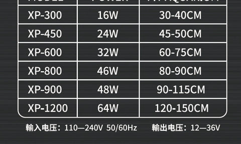 - XP 1200 (64w) Suitable Tank size: 120cm – 150cm