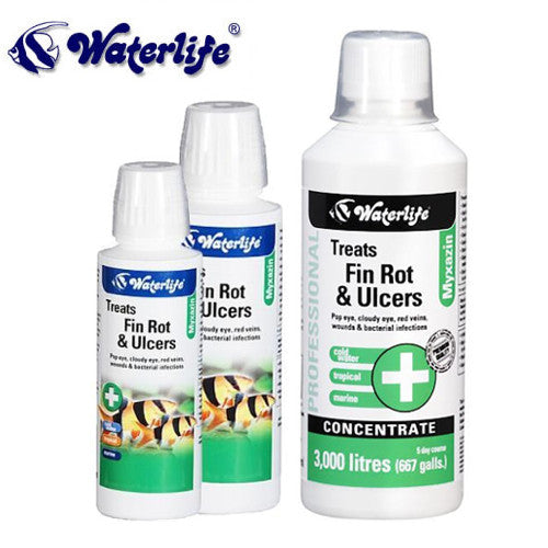 Waterlife Myxazin broad spectrum antibiotic. For the treatment of Pop eye, cloudy eye, red veins, wounds and bacterial infections.