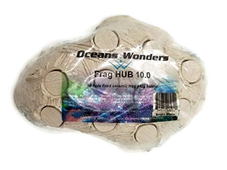 Oceans Wonders NEW Flush Fit Coral FRAG HUBS are perfect for safely holding all of your frags in one convenient spot in your aquarium. Our frag hubs are available in a variety of sizes with 10 holes. They are made from the same material as our popular ceramic frag plugs and are fired at nearly 2000 degrees in a high temperature kiln making them 100% inert and safe for your reef. They never have to be cured and are shipped dry, ready to use. A textured surface helps speed the spread of coralline algae and give each hub a more natural look in your aquarium.