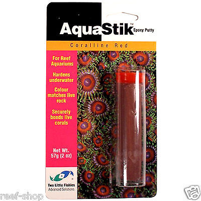 AquaStik Red Coralline. Underwater Epoxy Putty for marine aquariums and reef aquariums. Color matches coralline algae and live rock. Excellent for securing rock, stony corals, gorgonians and aquatic plants. Non-toxic to fish, plants & small animals. Cures dry, damp, or underwater.